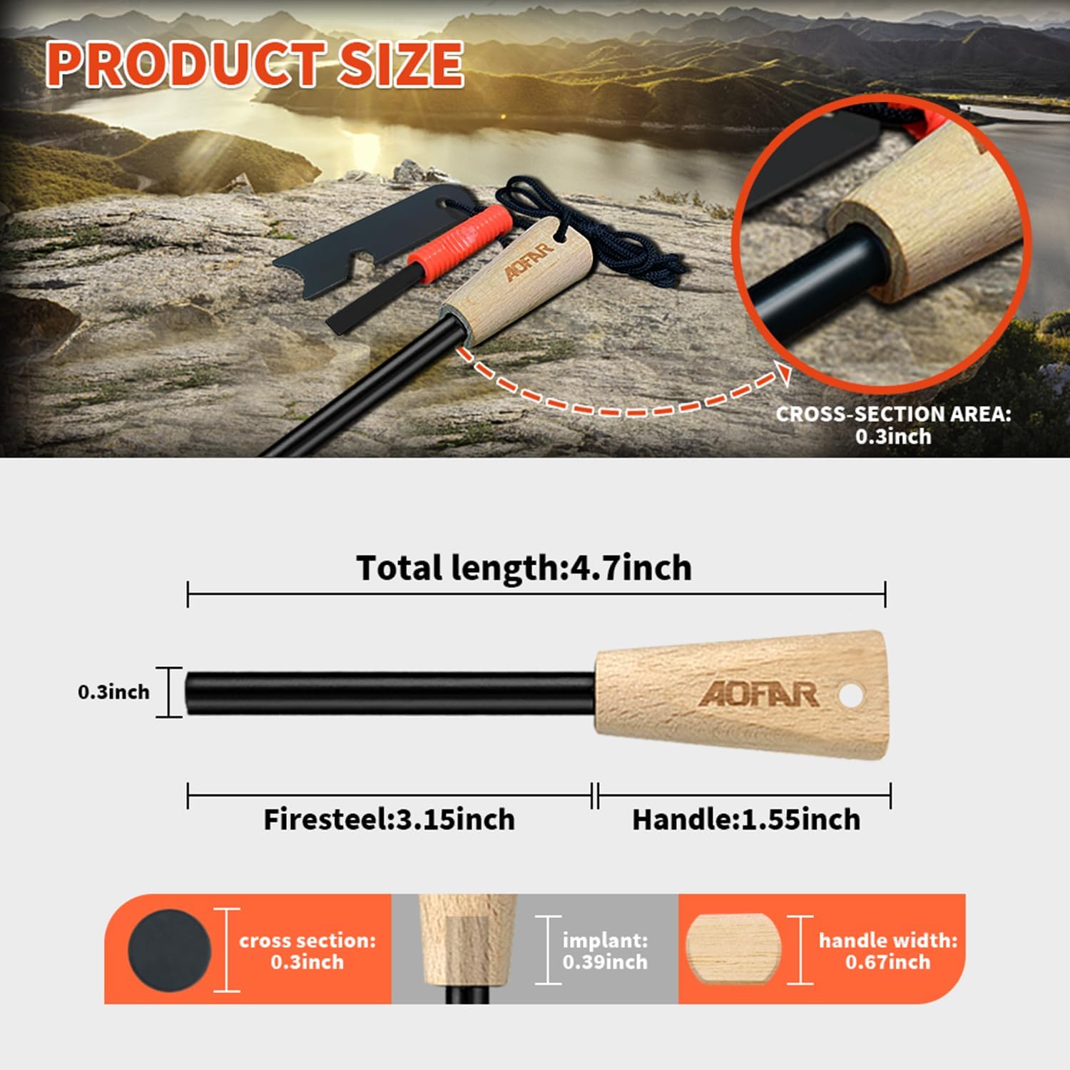AOFAR Fire Starter, AF-382 Ferrocerium (Ferro) Rods, Fire Starter Kit with Two Multi-Tool Fire Strikers, Paracord Lanyard for Camping, Hiking, Emergency Rescue