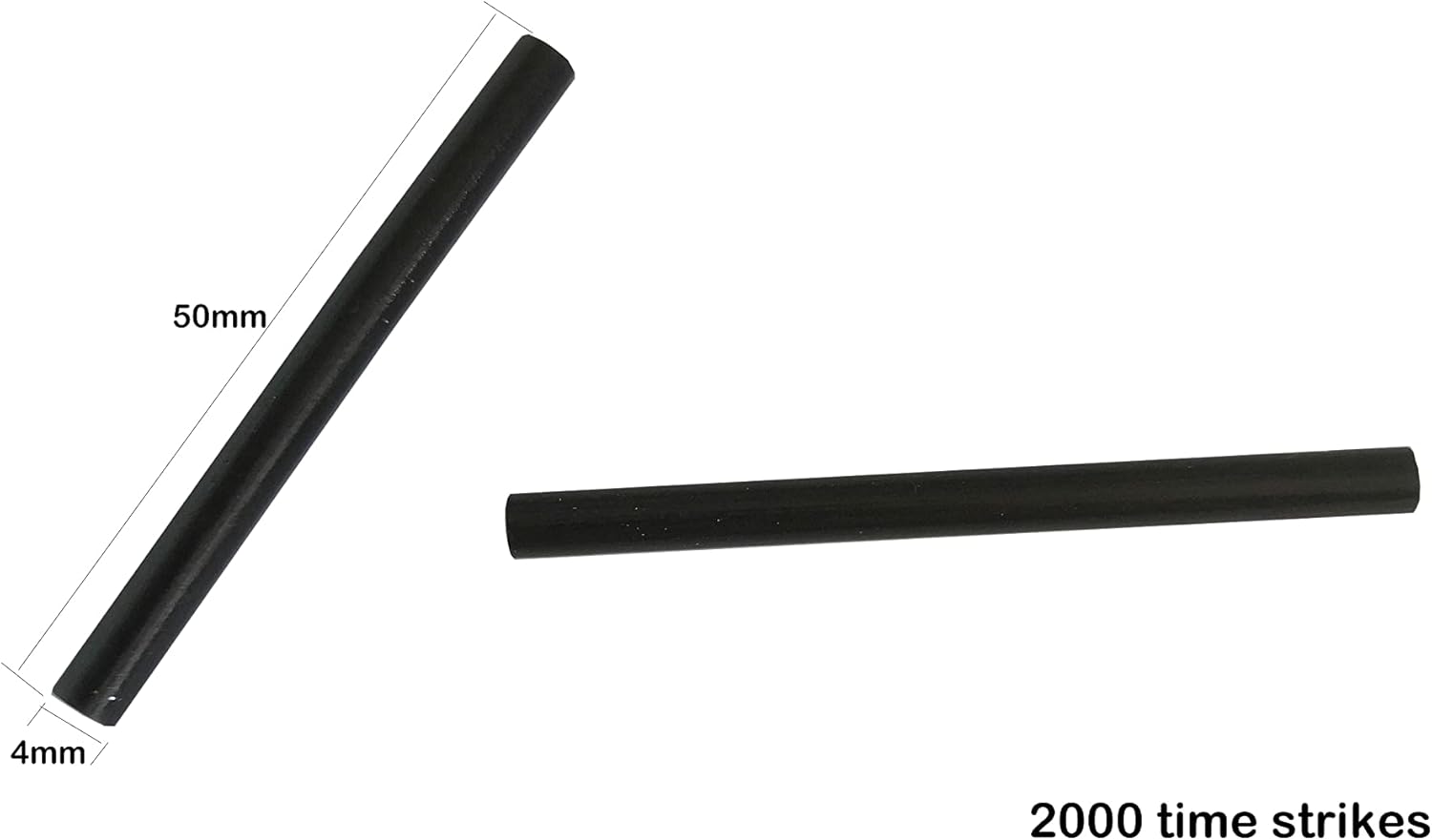 The ferro rod is 4 x 50mm, It’s the perfect balance between softness & durability, consistently outperforming the leading fire starters. Sparks shower at 5,500 F (3,000 C) to ignite a fire in any weather (waterproof), at any altitude, they will easily yield 2,000+ strikes. Probably more. USING THE STRIKER, REMOVE THE BLACK PROTECT LAYER BEFROE USE!