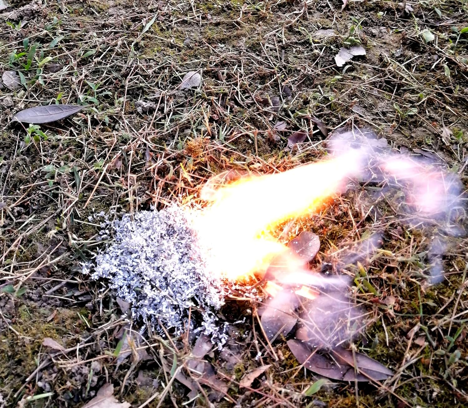 Magnesium is a solid combustible material, it starts with ferro rod, wooden matches or torch lighter, it’s the lightest weight fire starter, easy to carry and store in your backpack,BOB,EDC or survival kit. We suggest using at least 1/3 bag of the whole bag in one time to each starter. Please KEEP AWAY FROM CHILDREN, PETS and DO NOT use it indoor. It’s FORBIDDEN if you extinguish magnesium fire by using water.But dry sand will work.