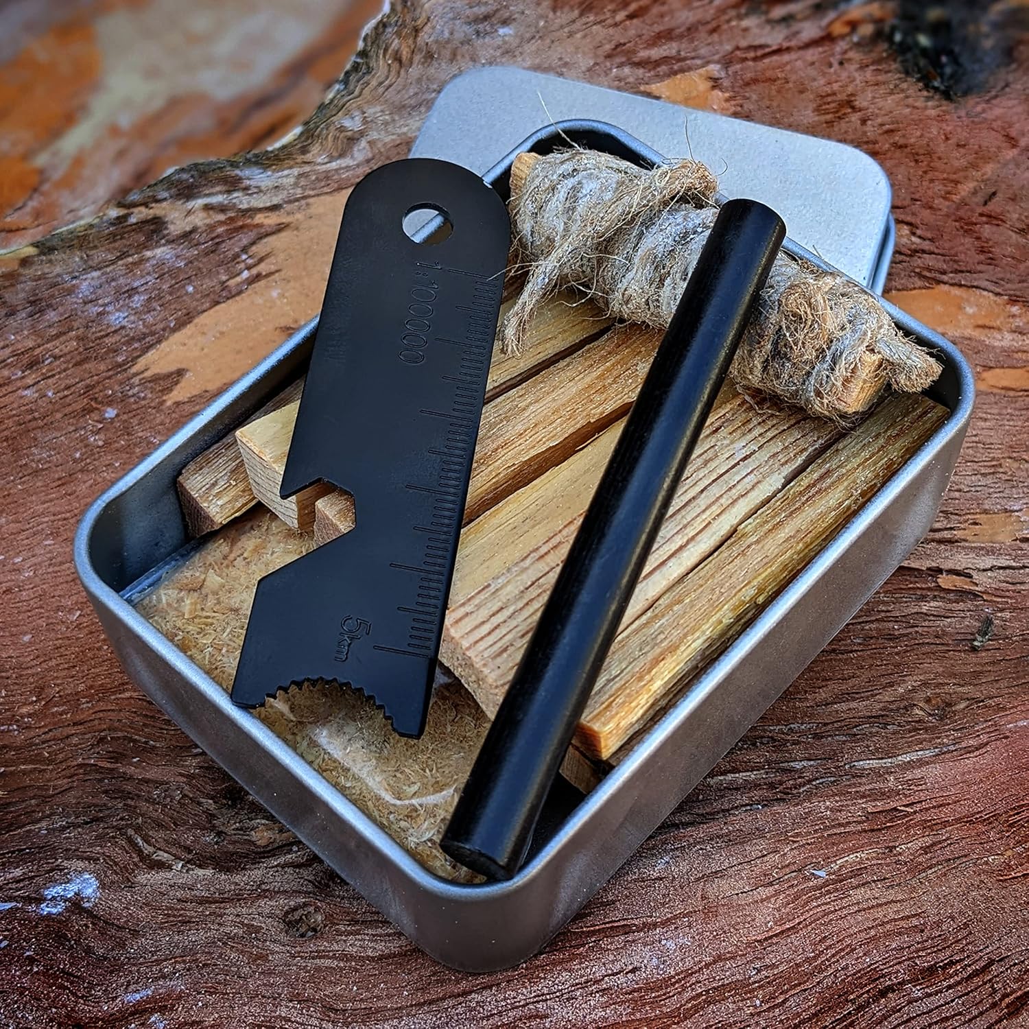 Steve Kaeser Fatwood 100% Natural Firestarter Sticks Hand Cut in The USA Ferro Rod Ferrocerium Flint Jute Fatwood Chips Striker Tin Container Survival Emergencies Camping Since 1989