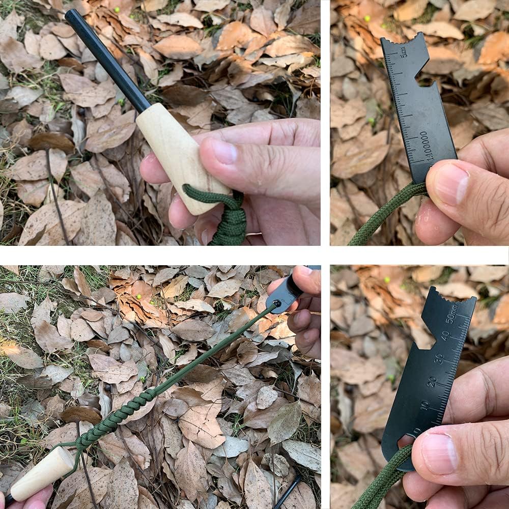 Ferro rod: The ferrocerium rod is made of high density fire steel and can produce sparks over 5000 F degrees when struck by a striker. The sturdy wooden handle allows you to hold it tightly without letting it go. Its biggest advantage is that it can be easily used in very humid environments. Scrape off the black protective coating before use.